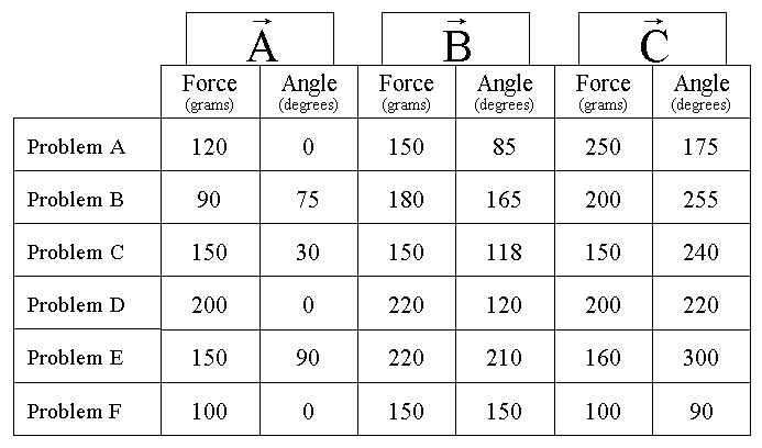 Hanging masses = "Forces" To create the "forces" for the force table situations, use the string over the pulleys connected to the mass hanger. Different slotted masses can be used to create the forces required (remember, the hanger itself has a mass of 50 grams!). |