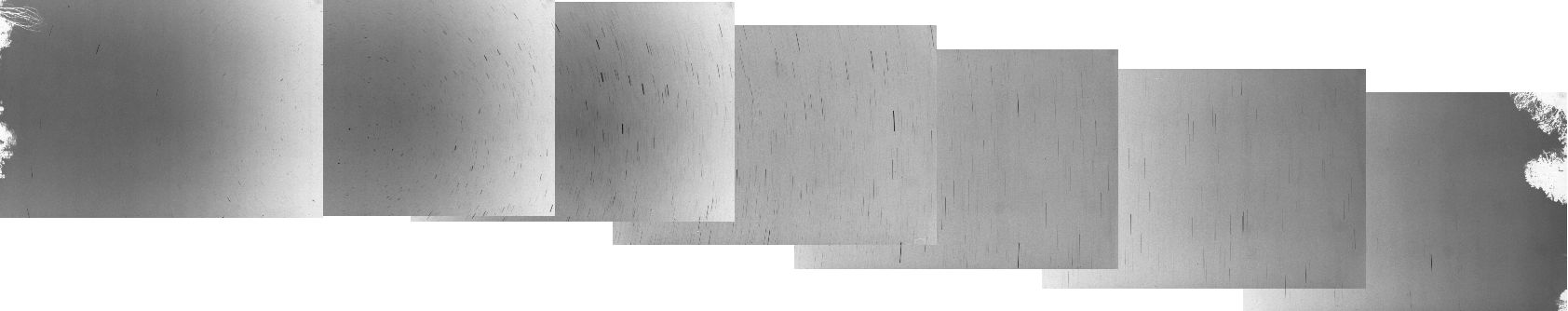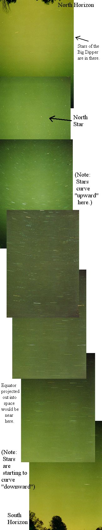 The strip above shows 7 images that were blended together to form a "sky strip". On the left is the North Horizon - then the camera is tilted up slightly, and another shot is taken .. then tilted again .. another shot .. etc. Finally, the camera is pointing at the Southern Horizon.