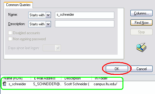 Step 9) The system should find you, and put your name down in that lower box (as shown below). Click OK, and then click OK or whatever to close all the other dialog boxes.