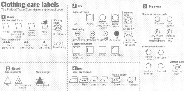 When I first envisioned setting up a web page, I knew that there would have to be an appropriately unusual image to launch it! This is that image - the brand new cleaning icons to be used on garments - celebrate the successful merging of technology and information!