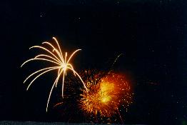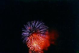 So then I decided I had to get situated better for the next fireworks attempt ... at the LIVONIA SPREE. I camped out 3 hours early to get a place in the parking lot where I could shoot from the back of my truck bed. (In the future, I would probably stay farther back and use the zoom again - I like the shots with the zoom at the end!) [The reason they seem "shifted low" is that I was trying to avoid the cars and light poles, etc in the lower part of the frame.]