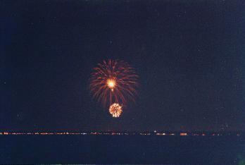 I decided to play around with photographing fireworks - fighting the crowds and the mosquitos (don't even talk to me about MetroPark!). I decided to avoid the crowds at St. Clair Shores, and go around to the MetroPark just north and look back across the bay.